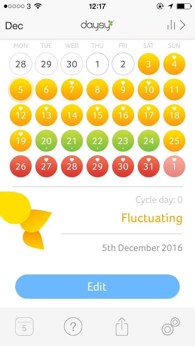 This is my calendar so far. As you can see Daysy is already starting to 'look ahead' as to what my fertility status might be for the rest of the month.
