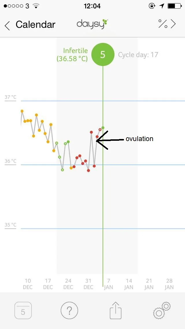And there's my graph. I've done a little arrow so you can see how Daysy has calculated ovulation.
